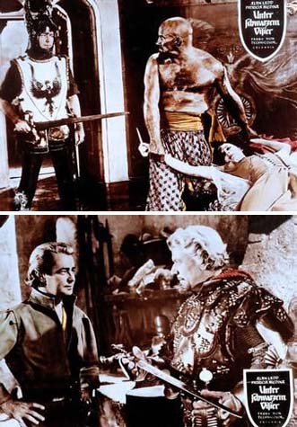 Unter schwarzem Visier(The Black Knight) Ein farbenfroher Ritterfilm voller Actionszenen, Schlachtengetümmel und Liebesromanzen. Zeitlich angesiedelt im sagenhaften Reich von König Artus, wird die Geschichte einer Rache erzählt. Der bescheidene Waffenschmied John (Alan Ladd) wird Zeuge, wie die Burg seines Herrn auf brutale Weise überfallen und dem Erdboden gleichgemacht wird. Mithilfe von Sir Ontzlake arbeitet sich John zu einem geschickten Schwertkämpfer hoch. Jetzt ist für ihn auch der Weg frei zu der schönen Linet (Medina), die sein Herz begehrt. In der unheimlichen Rüstung eines schwarzen Ritters zieht er durch die Lande, um die Bösewichter zur Strecke zu bringen, die in König Artus’ Reich für Unruhe sorgen. Die in England spielende Geschichte wirkt durch ihre Schauplätze (diverse Außenaufnahmen entstanden in Spanien) wenig britisch und daher etwas unglaubwürdig, hat aber eine Fülle spektakulärer Momente. Imposanteste Szenenfolge ist die Niederschlagung eines heidnischen Opferfestes, bei der ein Zirkel aus Steinquadern (à la Stonehenge) niedergerissen wird.