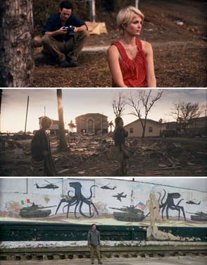 Die Welt ist eine andere, seitdem sich durch den Absturz einer NASA-Sonde über dem Grenzgebiet zwischen Mexiko und den USA außerirdisches Leben ausgebreitet hat. Das US-Militär kämpft mit regelmäßigen Luftangriffen gegen die amphiben Riesenkraken und erklärt das Gebiet zur „Infizierten Zone“. Mitten in diesem Chaos erhält Fotoreporter Andrew von seinem Chef den Auftrag, dessen Tochter Sam sicher aus Mexiko zurück in die USA zu eskortieren. Durch sein Verschulden verpassen sie die letzte Fähre und es bleibt nur eine Möglichkeit: der riskante Landweg durch das Reich der Monster …